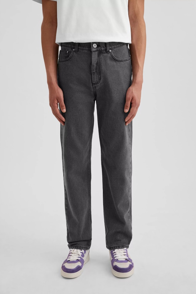 Die Tumble-Jeans Besteht Aus Teilweise Recyceltem Baumwoll-Denim. Sie Sind In Einem Klassischen Fünf-Taschen-Profil Geschnitten, Haben Eine Gerade Beinpassform Und Sind Mit Einem Gebrandeten Lederaufnäher Auf Der Rückseite Ausgestattet. Toumane Ist 186 Cm Groß Und Trägt Größe 31.