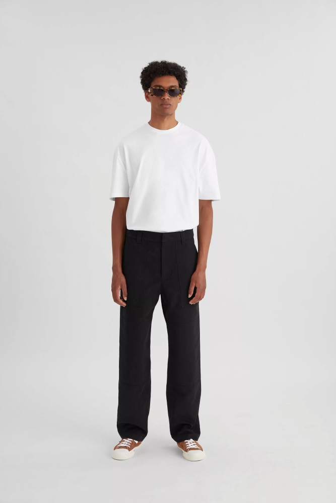 Die Eisenhose Ist Aus Baumwolle In Gerader Beinform Geschnitten. Sie Sind Von Arbeitskleidung Inspiriert Und Haben Nähte An Den Knien Und Sind Mit Einem Markentypischen Gepäckanhänger Versehen.vincent Ist 186 Cm Groß Und Trägt Größe M.