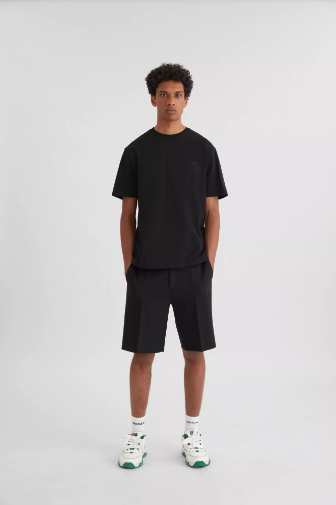 Das Charakteristische T-shirt Mit Rundhalsausschnitt Ist Aus Gots-zertifizierter Bio-baumwolle In Bequemer Normaler Passform Geschnitten. Es Ist Dezent Mit Dem Buchstaben „a“ In Farblich Abgestimmten Fäden Bestickt. Vincent Ist 186 Cm Groß Und Trägt Größe M.