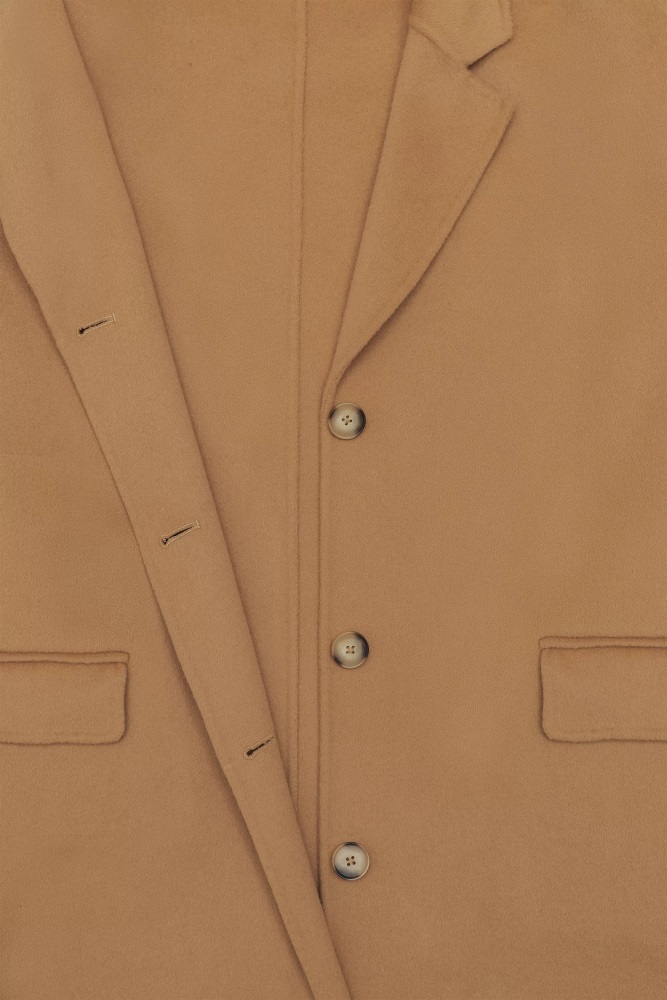 Der Wollmantel Medea Zeigt Eine Klassische Silhouette Mit Leicht Entspannter Passform. Der Mantel Aus Hochwertiger Wolle Kommt Mit Frontknöpfen In Hornimitat Und Dem Saisonalen Arigato Story Label Auf Der Manschette Gestickt. Der Medea-Mantel Hat Eine Ungefütterte, Dekonstruierte Silhouette Mit Lockerem Fall. Omari Ist 183 Cm Groß Und Trägt Größe M.