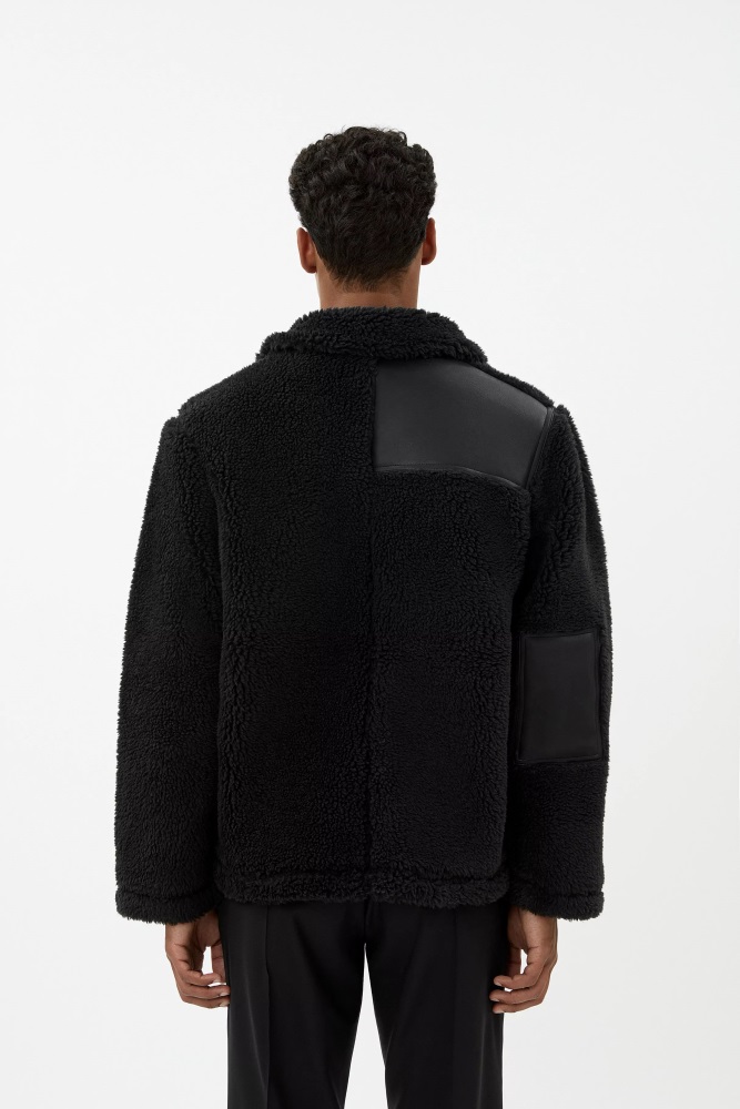 Axel Arigato 'Mica Jacket' Aus Der Frühjahr-Sommer-Kollektion 2021 Erscheint Jetzt In Zwei Farbvarianten. Diese Komplett Schwarze Version Ist Mit Tonalen Details Aus Pu-leder Ausgestattet, Mit Kontrastierenden, Glänzenden Silberbesätzen Wie Dem Metalllogo Auf Der Brusttasche Und Klobigen Reißverschlüssen Mit Eingeprägtem Arigato-logo Auf Den Schiebern. Anton Ist 185 Cm Groß Und Trägt Größe M.