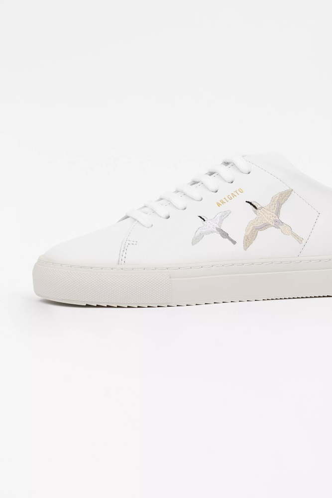Präsentiert Den Sauberen 90er Bienenvogel Mit Details Von Zwei Ikonischen Mehrfarbigen Bienenvogel-Stickereien Auf Der Seitenwand, Kombiniert Mit Einem Dezenten Logo-Stempel In Gold. Der Handgefertigte Sneaker Bietet Ein Obermaterial Und Futter Aus Italienischem Leder, Das Auf Einer Cup-Sohle Mit Einer Mischung Aus Recyceltem Und Neuem Gummi Sitzt.