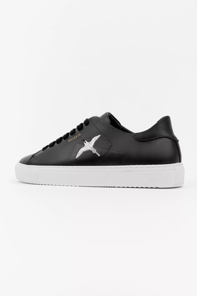 Der Cleane 90 Tape Bird Zeigt Ein Texturiertes Tape Im Industriestil Auf Der Seitenwand In Kombination Mit Der Axel Arigato Charakteristischen Bienenvogelstickerei, Die Einen Kontrast In Den Texturen Erzeugt. Die Handgefertigte, Minimalistische Silhouette Zeichnet Sich Durch Klare Linien Aus Und Ist Mit Einem Gepolsterten Fußbett Und Einer Fußgewölbestütze Für Maximalen Komfort Ausgestattet.