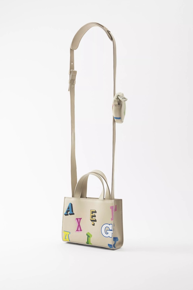 Die Trait-Tasche Ist So Konzipiert, Dass Sie Crossbody Getragen Werden Kann, Und Verfügt über Ein Münzfach Entlang Des Schultergurts, Um Ihre Wichtigsten Dinge Organisiert Zu Halten. Es Ist Mit Einem „Arigato“-Etikett Versehen, Besteht Aus Leder Und Ist Mit Bunten Druckbuchstaben Bedruckt, Die „Axel Arigato“ Bedeuten – Die Platzierung Der Zeichen Variiert, Wodurch Jedes Stück Einzigartig Wird.
