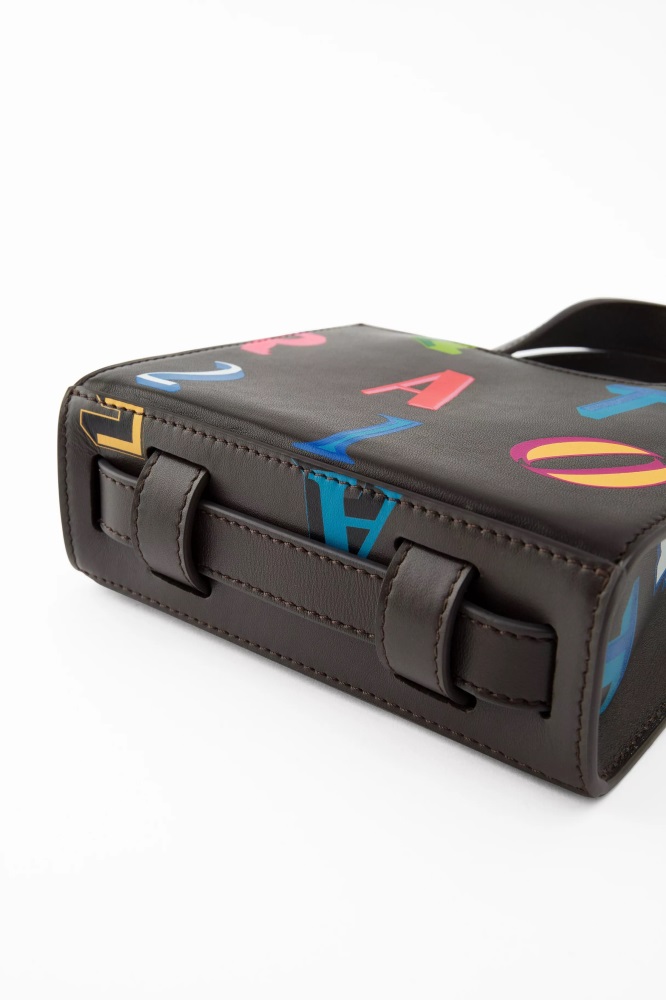 Die Trait-Tasche Ist So Konzipiert, Dass Sie Crossbody Getragen Werden Kann, Und Verfügt über Ein Münzfach Entlang Des Schultergurts, Um Ihre Wichtigsten Dinge Organisiert Zu Halten. Es Ist Mit Einem „Arigato“-Etikett Versehen, Besteht Aus Leder Und Ist Mit Bunten Druckbuchstaben Bedruckt, Die „Axel Arigato“ Bedeuten – Die Platzierung Der Zeichen Variiert, Wodurch Jedes Stück Einzigartig Wird.