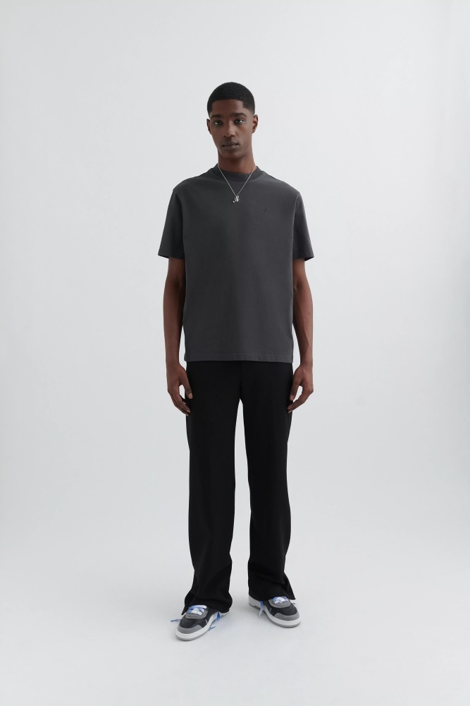 Das Charakteristische T-shirt Mit Rundhalsausschnitt Ist Aus Gots-zertifizierter Bio-baumwolle In Bequemer Normaler Passform Geschnitten. Es Ist Dezent Mit Dem Buchstaben „a“ In Tonalen Fäden Bestickt. Diogo Ist 187 Cm Groß Und Trägt Größe M.