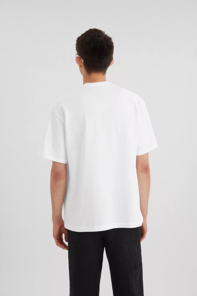 Das Voyage T-shirt Ist Aus Bio-baumwolle In Entspannter Rundhalsform Geschnitten. Es Ist Mit Dem Arigato-logo, Einem Flugzeug Und Der Adresse Unseres Londoner Flaggschiffs Bedruckt. Niek Ist 188 Cm Groß Und Trägt Größe M.
